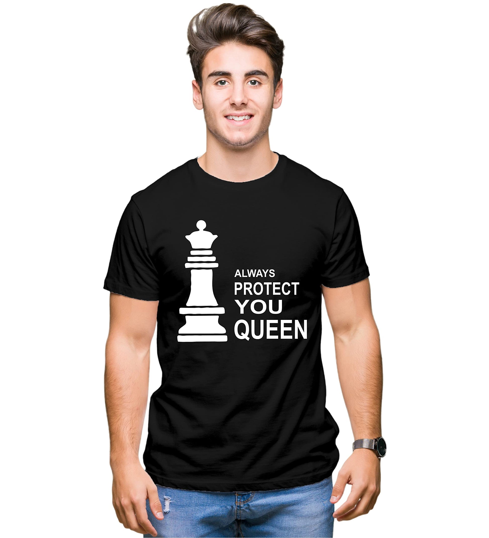 Couple Tshirts for Couples | Printed Always Protect You Queen Trust You King T-Shirts | Men's and Women's Round Neck T-Shirt